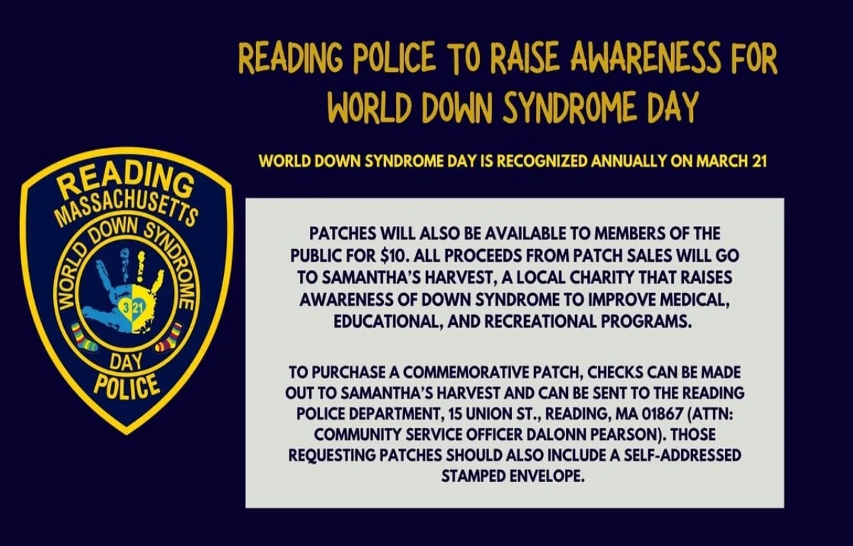 READING — Deputy Chief Christine Amendola and Community Service Officer DaLonn Pearson are pleased to share that the Reading Police Department will once again wear special uniform patches throughout the month of March in recognition of…