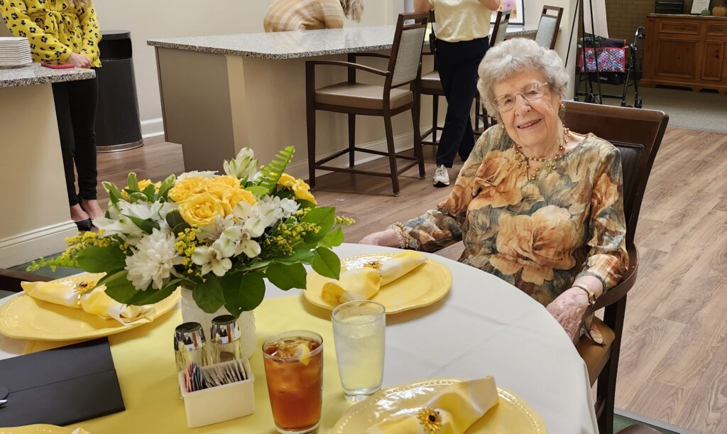 The LCB Senior Living community, located in Reading, is also home to 103 year old Jean Bates, the 2nd oldest resident in all of LCB’s 41 communities throughout New England and the Mid-Atlantic. Jean is described as “very vibrant” and “so full of life,” and is a Yahtzee pro who regularly strength trains. She celebrated her birthday in October with a yellow-themed party, a tribute to her late husband who always sported a yellow sweater.