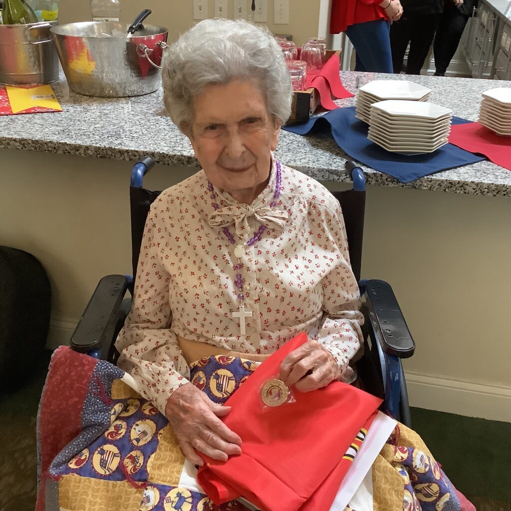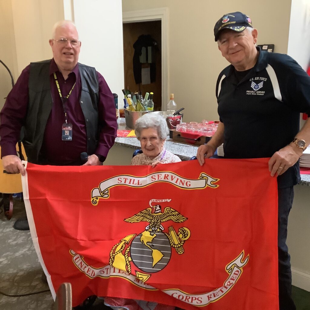 Also in The Residence at Pearl Street’s centenarian club is 102 year-old Mary O’Leary, a former marine sergeant from Wakefield. The Veterans Officers from the Town of Reading (Will Valliere) and Wakefield (David Mangan) both attended her birthday celebration.