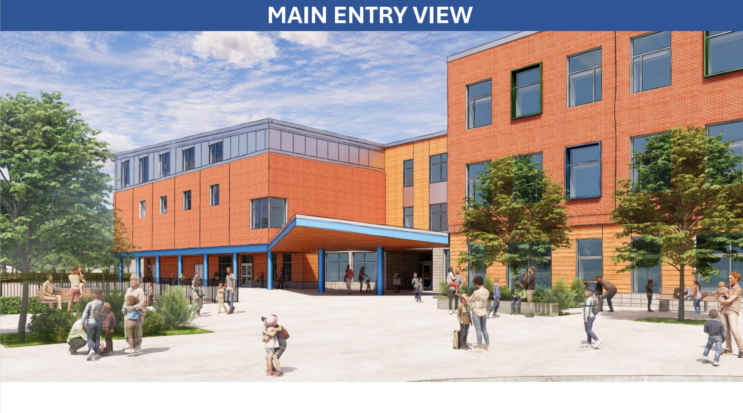 - Design (13:42 β 19:31): Three-story building with preschool (RISE), K-5 classrooms, gym, and cafeteria. Features improved parking and traffic flow.
