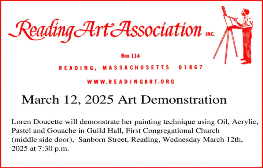 Tonight – March 12, 2025 the Reading Art Association will host a demonstration by Loren Doucette. She works in Oil, Acrylic, Pastel and Gouache.