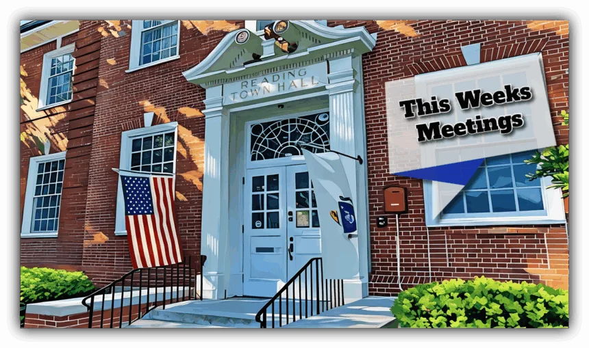 Here is the list of all the meetings with agendas currently scheduled for this week in Reading. As always, this list is only up to date as of Monday morning and new meetings or modifications can be added/revised at any time. For PDF’s of the agendas, please click on the meeting name. Please check out https://www.readingma.gov for any changes.