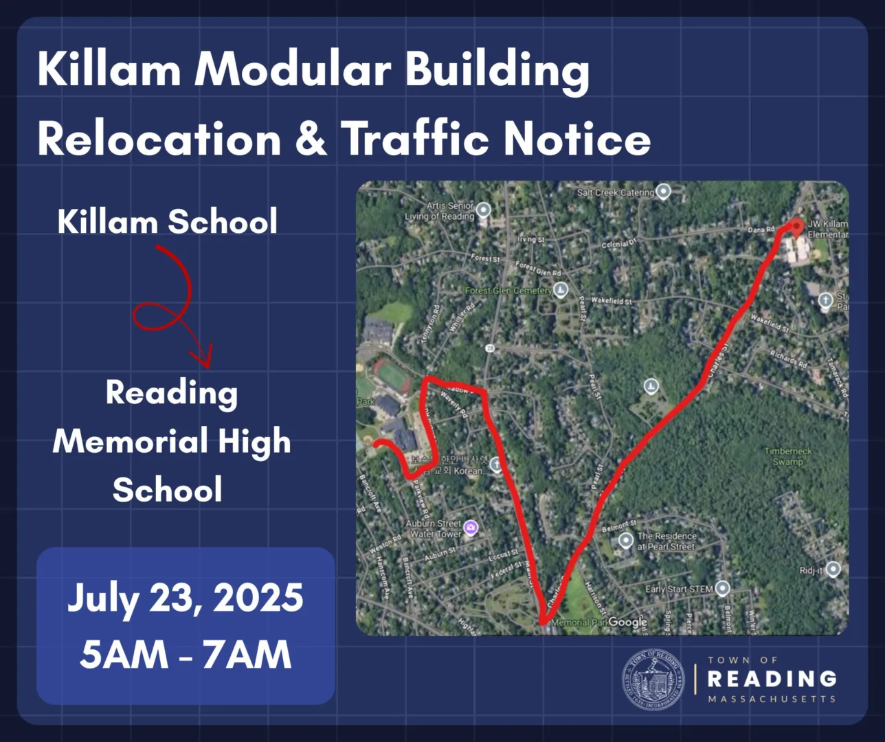 Recapping Everything in Reading, MA > News > Construction > ๐Ÿ—๏ธ Killam Modular Building Relocation & Traffic Notice