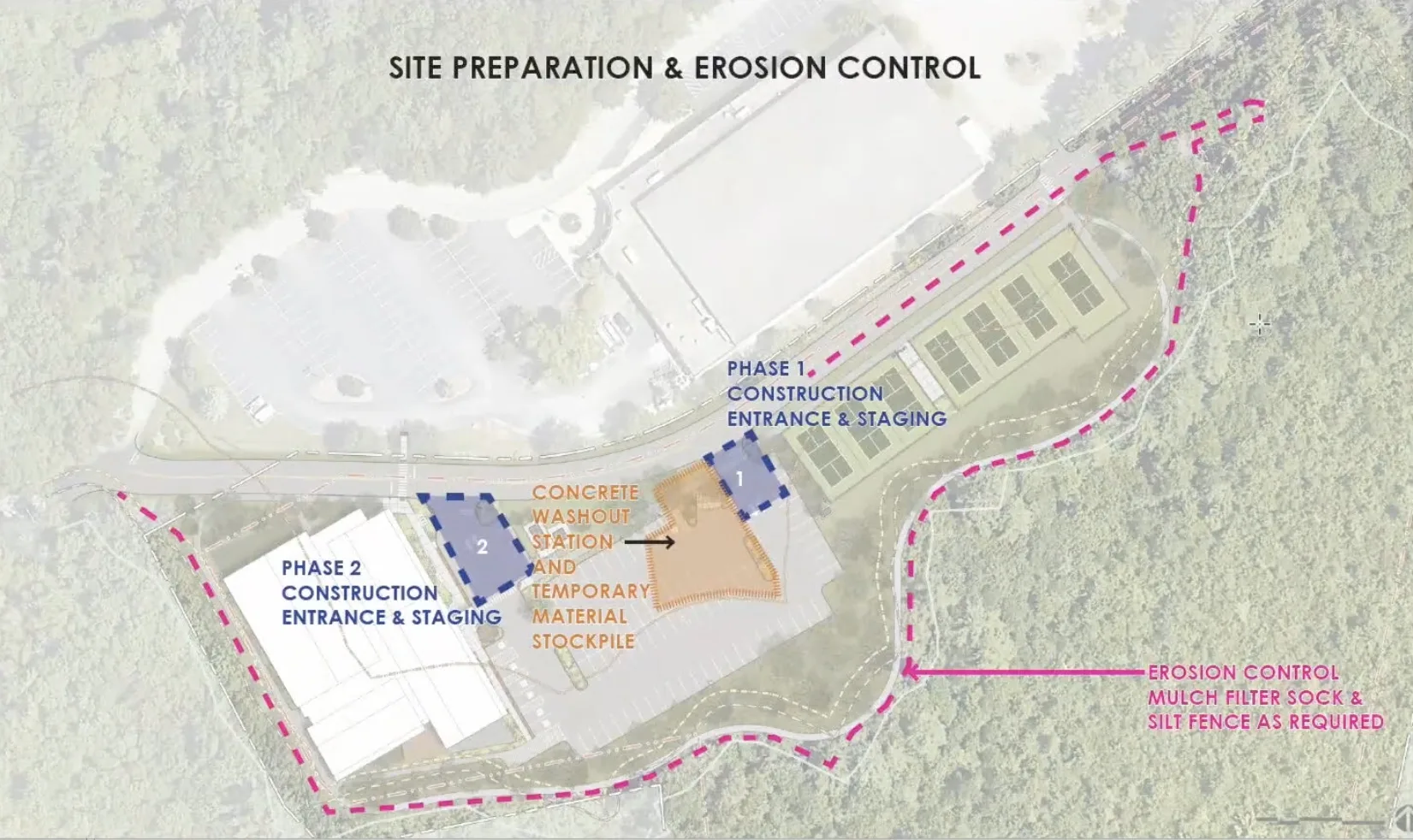 - Scope: Community center, courts, ADA walkways, parking, stormwater, landscaping