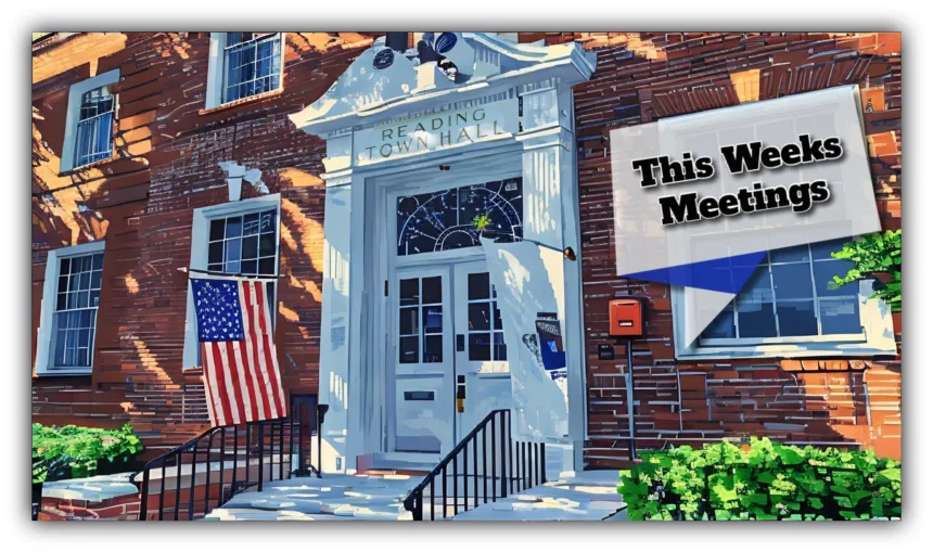 Here is the list of all the meetings with agendas currently scheduled for this week in Reading. As always, this list is only up to date as of Monday morning and new meetings or modifications can be added/revised at any time. For PDF’s of the agendas, please click on the meeting name. Please check out https://www.readingma.gov for any changes.