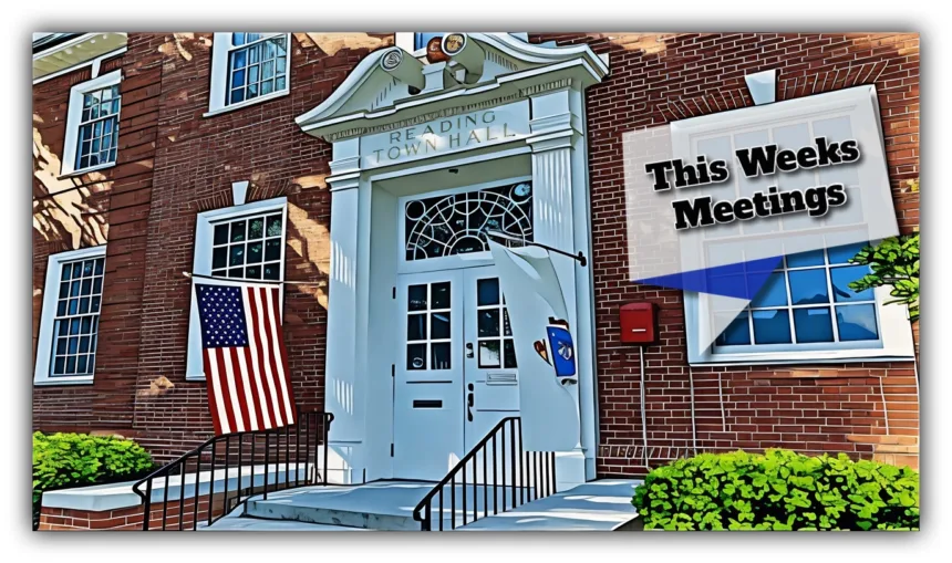 Here is the list of all the meetings with agendas currently scheduled for this week in Reading. As always, this list is only up to date as of Monday morning and new meetings or modifications can be added/revised at any time. For PDF’s of the agendas, please click on the meeting name. Please check out https://www.readingma.gov for any changes.