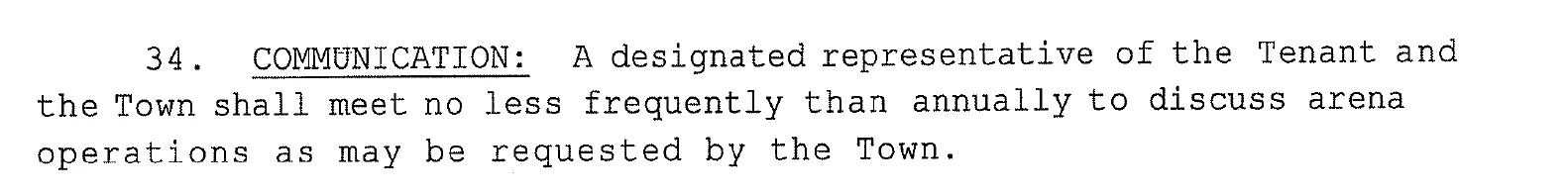 We’ve provided the complete lease provision below, which consists of a single sentence. It does not reference any input from the Select Board or Ice Arena board, only stating that a town representative and Burbank’s shall meet annually to discuss operations as requested. The agenda item, titled “Annual Update from the Reading Ice Arena Authority,” was allocated 45 minutes.