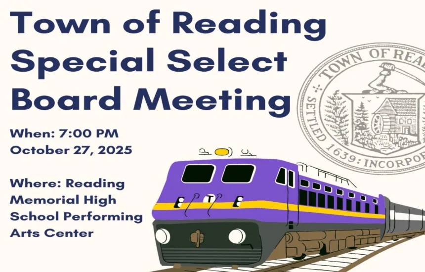 The Town of Reading Select Board is hosting a special public meeting on Monday, October 27, 2025, at the Reading Memorial High School Performing Arts Center to discuss the MBTA’s proposed Turnback Track Project in Reading and the impact to the community.