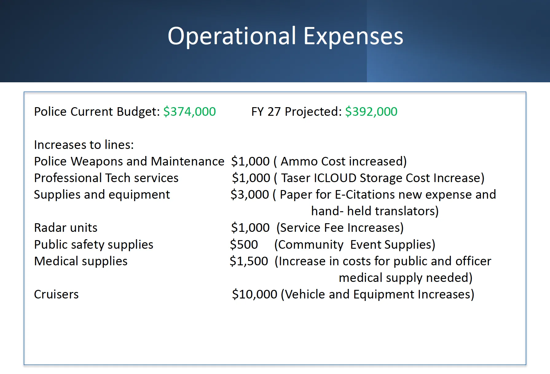 Operational costs are rising as well, from ammunition and cruiser outfitting to technology upgrades. Public records requests have surged 45 percent over last year, adding administrative strain. Despite these pressures, Amendola stressed that the department leverages grants and partnerships to offset costs, noting that programs such as RAD self-defense classes and the Youth Academy receive outside support.