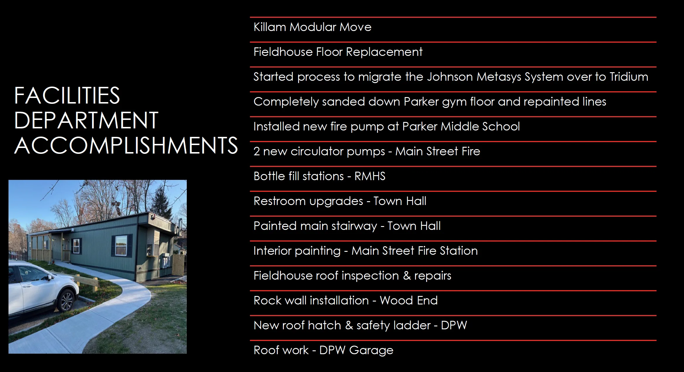 Despite those future challenges, Huggins stressed that the department continues to find savings where possible. Recent efficiencies funded projects such as a new fire pump at Parker Middle School and upgrades to building management systems.