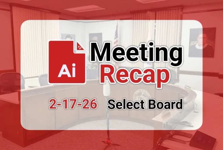 Below is a summarized version of the Select Board meeting, organized by timestamps and speakers, focusing on key points raised during the discussion in Reading, Massachusetts. This summary condenses the discussion into major themes, speaker contributions, and decisions, avoiding excessive detail while retaining the essence of the conversation. Timestamps correspond to the video linked at the bottom.