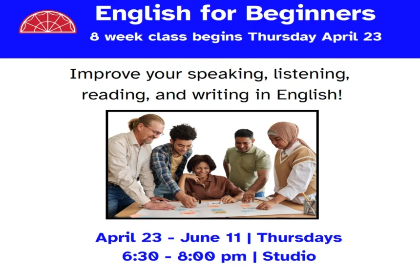 Beginner English Class for Adults | beginning April 23 for 8 sessions | 6:30-8 pm