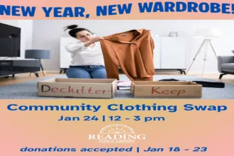New Year, New Wardrobe! Come to the Reading Public Library for a community clothing swap on Saturday, January 24. Reading Public Library (RPL), Reading, MA—Did you resolve to buy less…