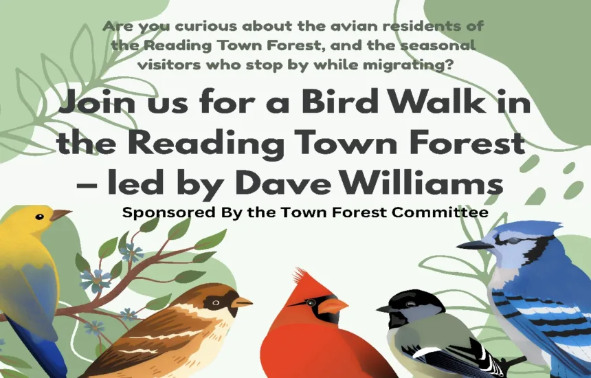 Are you curious about the avian residents of the Reading Town Forest, and the seasonal visitors who stop by while migrating? Join us for a Bird Walk in the Reading Town…