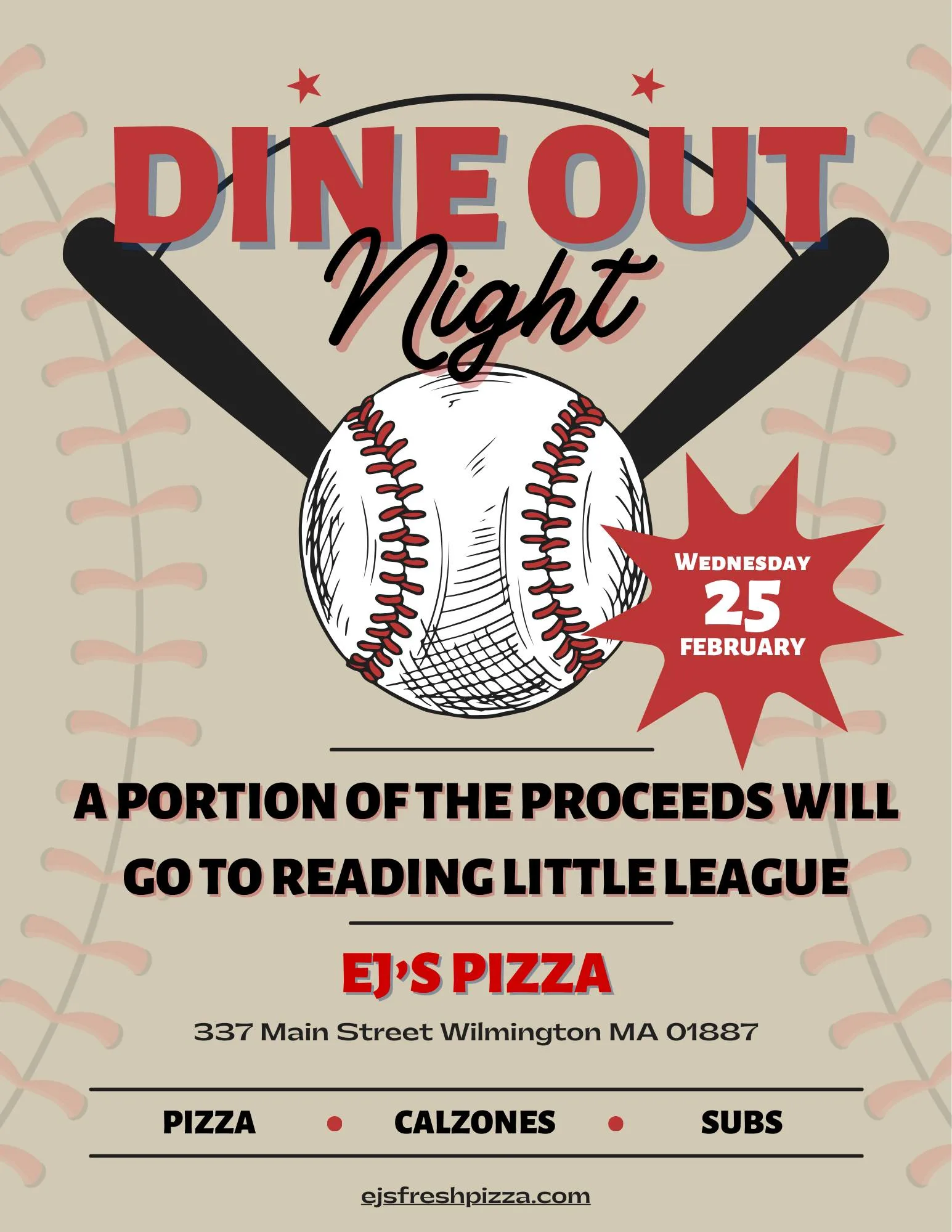 🍕 Dine Out Night at EJ’s Pizza for Reading Little League