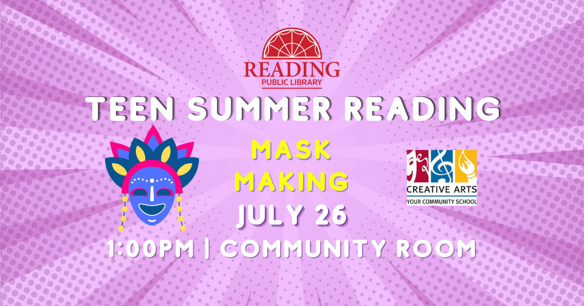 Many cultures have traditions and celebrations that use masks. Teens will be shown examples of traditional masks from different countries and then encouraged to make their own. Teens will also look to nature and animals for inspiration in their mask-making project.