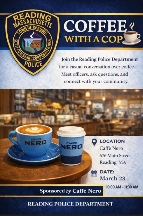 Come join the Reading Police Department on 3/23 for Coffee with a Cop at Caffè Nero! This is a great opportunity to meet your local officers, ask questions, share concerns, […]