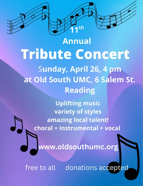 On Sunday, April 26 at 4 pm, Old South United Methodist Church will host its 11th Annual Tribute Concert. This concert has become a Reading tradition, featuring a wide variety […]