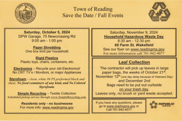 Today Saturday, October 5, 2024 the Town of Reading will hold it's bi-annual recycling event…